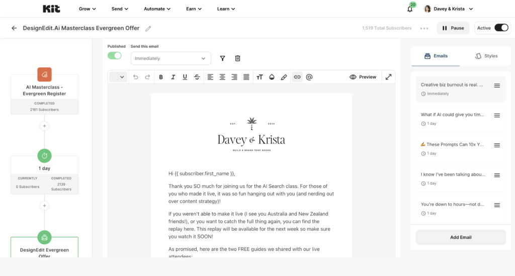 Let’s look at exactly how Davey & Krista’s AI newsletter funnel works from start to finish: